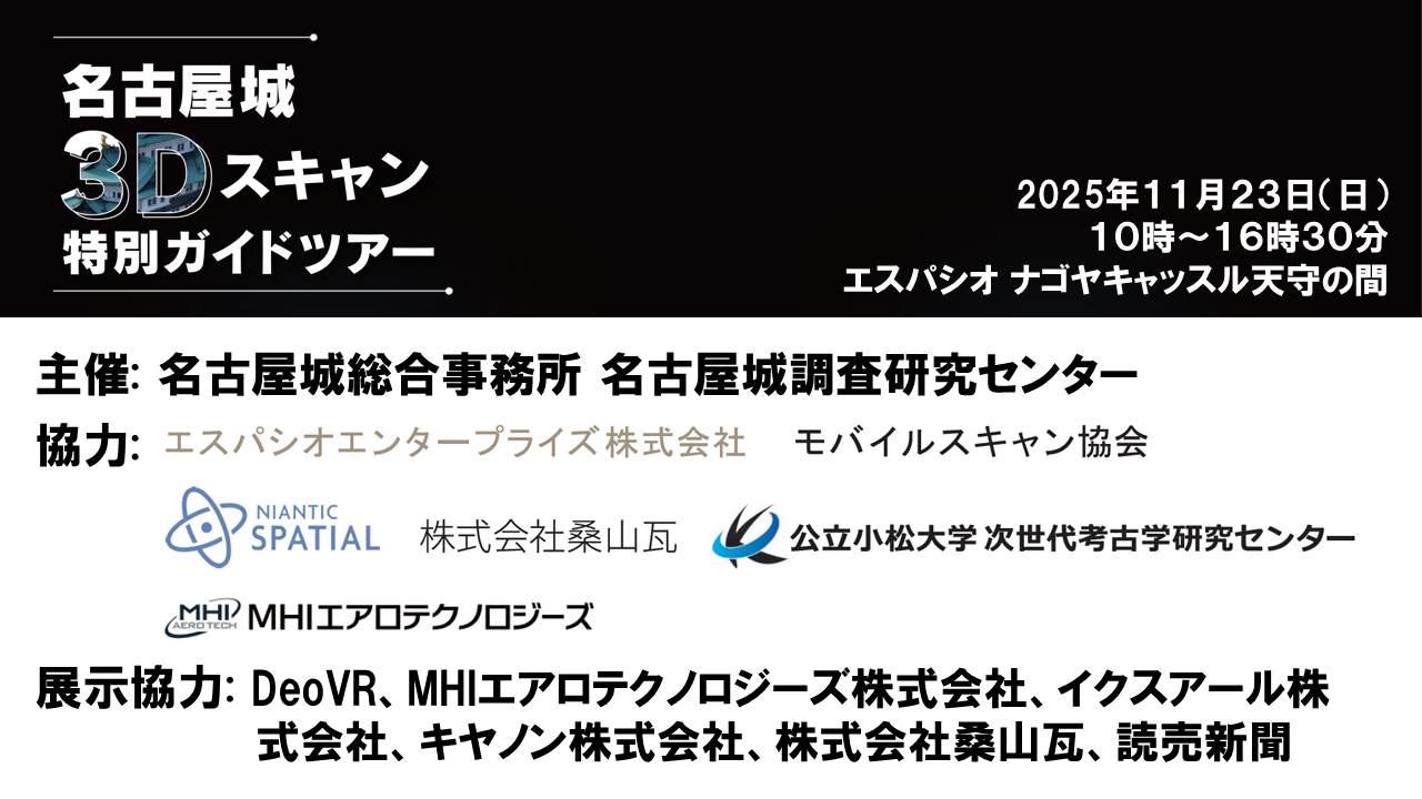 2025年11月23日、「名古屋城3Dスキャン特別ガイドツアー」が、エスパシオ ナゴヤキャッスル 天守の間・名古屋城で開催されました。イベントには800名以上の応募があり、抽選を経て、当日は約500名が参加しました。【当日配布資料はこちら】