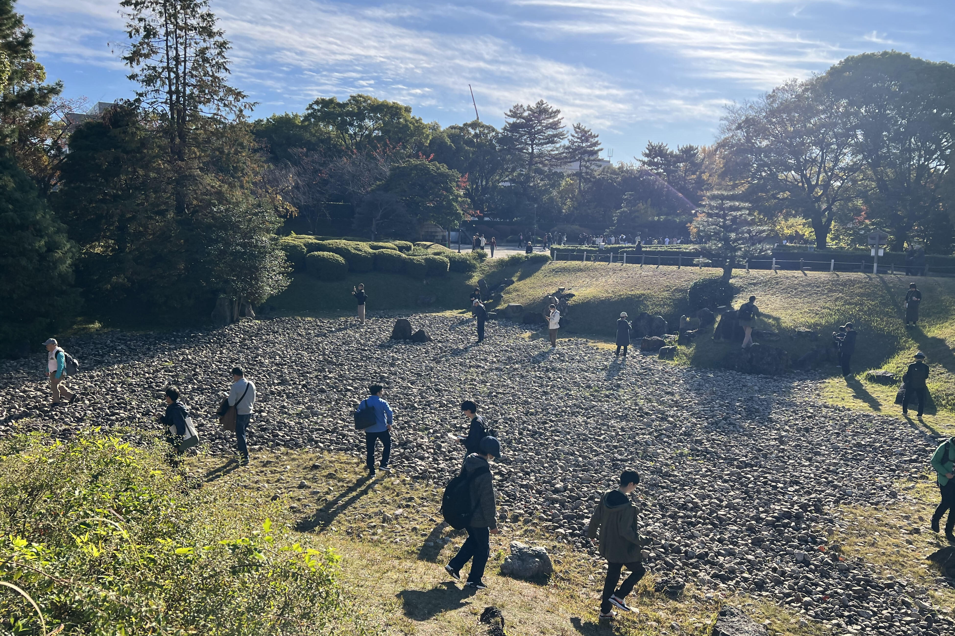 江戸時代には二之丸御殿の裏庭だった二之丸庭園は、近年発掘調査と整備が進んでいます。庭園内を巡りながら最新の成果を解説し、南池の中にもご案内します。